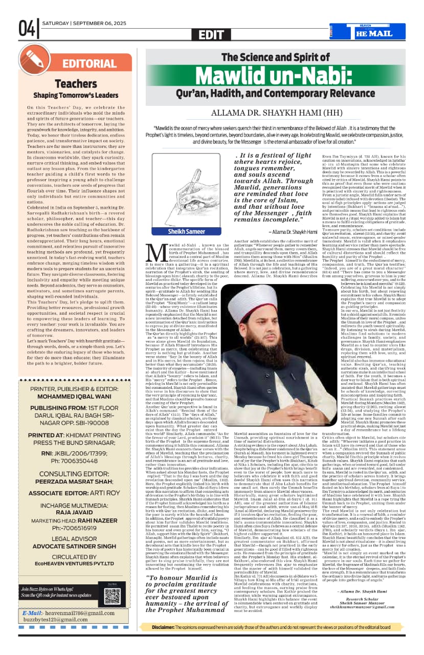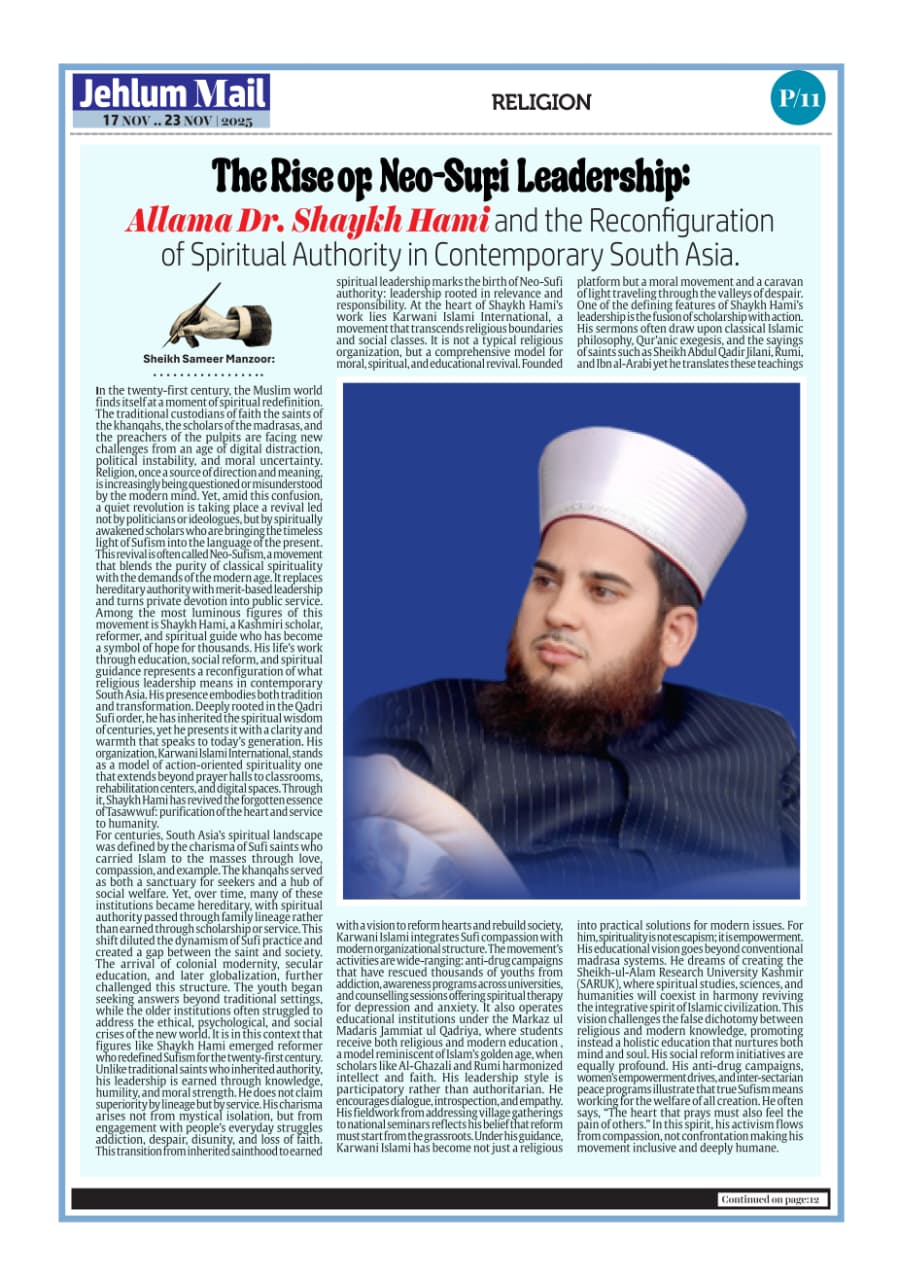 To add another feather to its cap, the state assembly has passed a bill on October 18, 2010 clearing the establishment of ‘Sheikh Ul Alam Research University of Kashmir’, It may be recalled here that Karwan Islami has linked its educational progarmme Min Zulmat Al Noor with the name of renowned religious scholar Hazrat Sheikh Ul Alam- Sheikh Noordin -Noorani (RA).